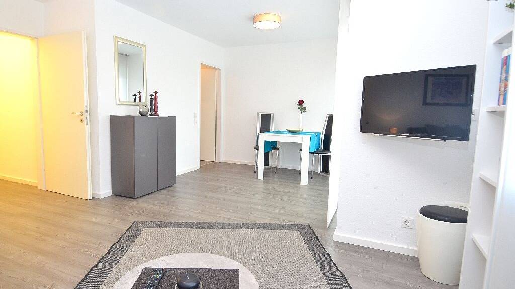 Diese Wohnung bietet auf kleinem Raum alles, was Sie zum wohlfühlen brauchen. Der Schlaf-und Wohnbereich besteht aus einem Doppelbett, Couch mit Couchtisch und einem Fernseher. Eine Kommode steht für Ihre Sachen bereit. Im Essbereich finden Sie einen Tisch mit zwei Stühlen. Von hier aus gelangen Sie direkt in die kleine, aber voll ausgestattete Küche. Das Badezimmer verfügt über eine Dusche. Auf dem Balkon können Sie Ihren Feierabend und die Ruhe genießen. Ein Gasgrill ist vorhanden. Parkmöglichkeiten befinden sich direkt an der Straße vor dem Haus. Die Wohnung kann von einer Person für 950 Euro/Monat inklusive Nebenkosten angemietet werden. In den Wintermonaten von Oktober bis einschließlich April fällt ein Heizkostenaufschlag in Höhe von 80 Euro/ Monat zusätzlich an. Die Endreinigung bei Auszug wird mit 20 Euro/Stunde berechnet.