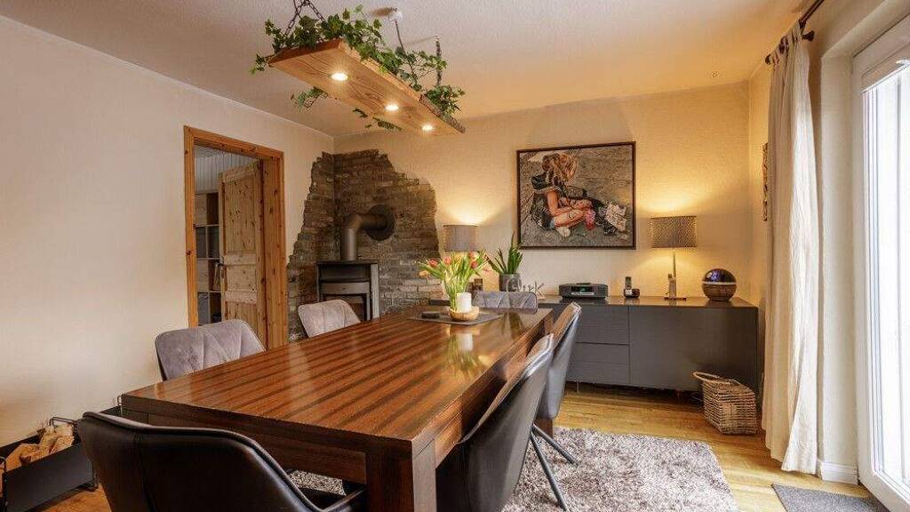 Das Wohnkonzept umfasst zwei Badezimmer, wovon eines mit einer Badewanne und das andere mit einer Dusche ausgestattet ist, ein Bad verfügt zudem über ein Fenster. Für gemütliche Stunden sorgt ein freistehender Kamin, während ein beheizter Vollkeller zusätzlichen Nutzwert bietet. Besonders hervorzuheben ist das weitläufige, ca. 829 m² große Grundstück, das im Außenbereich einen großzügigen Garten mit praktischen Nebengebäuden wie einem Gartenhaus und einem Holzschuppen sowie eine Einzelgarage umfasst.