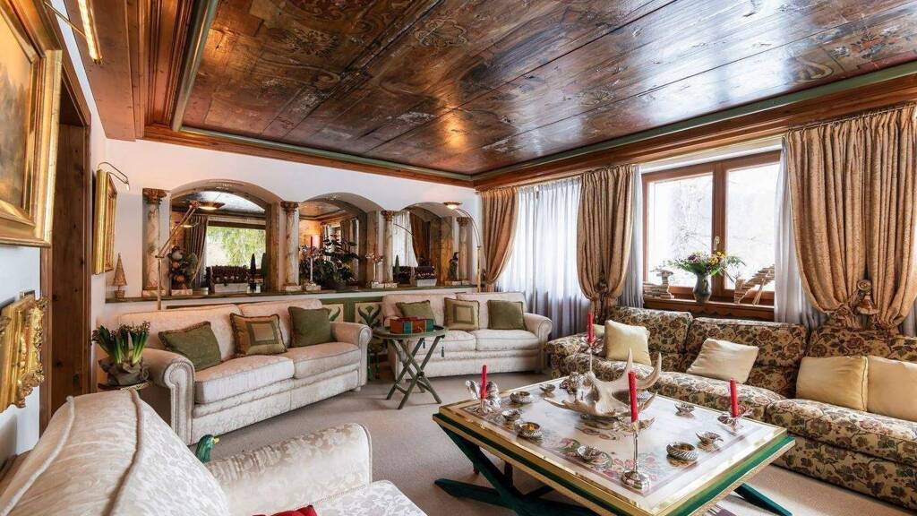 Ergänzt wird die Immobilie durch eine große Garage, Nebenräume und einen privaten, eingezäunten Park von etwa 12 Hektar sowie durch technische Anlagen, die Autonomie und Sicherheit gewährleisten. In den 1950er Jahren erbaut und bis 2024 modernisiert, stellt sie eine einzigartige Gelegenheit für alle dar, die Privatsphäre, Komfort und Prestige im Herzen der Dolomiten suchen.