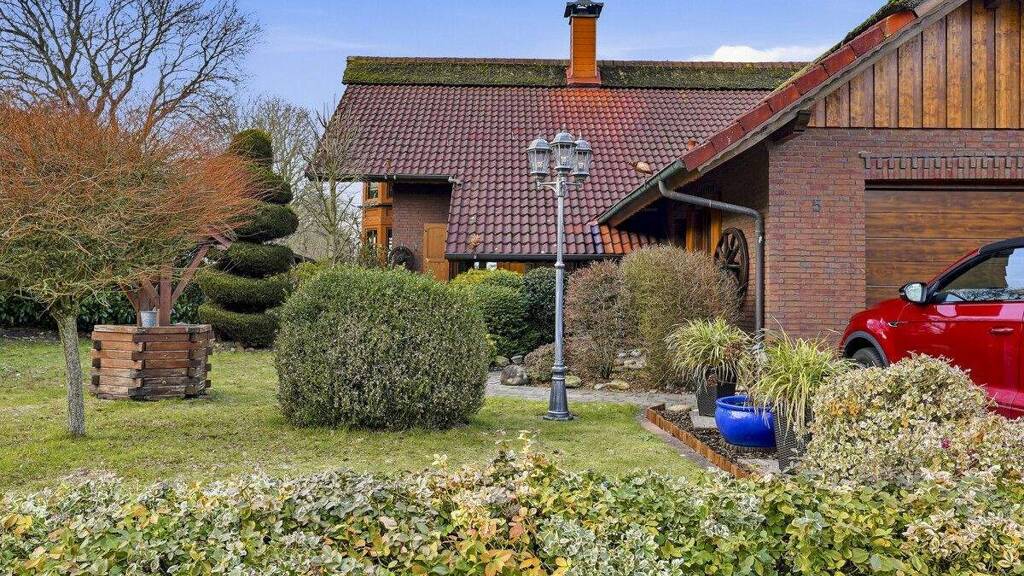 Auf einem ca. 730 m² großen Grundstück und mit rund 150 m² Wohnfläche verbindet diese Immobilie Großzügigkeit, Komfort und Gemütlichkeit auf harmonische Weise. Bereits beim ersten Ankommen vermittelt der stilvoll angelegte Vorgarten mit stilvollem Baumbestand, Formschnittgehölzen und liebevollen Details ein Gefühl von Geborgenheit und Qualität. Die Garage mit neu installiertem elektrischem Sektionaltor fügt sich dabei harmonisch in das Gesamtbild ein und bietet komfortables und sicheres Parken.