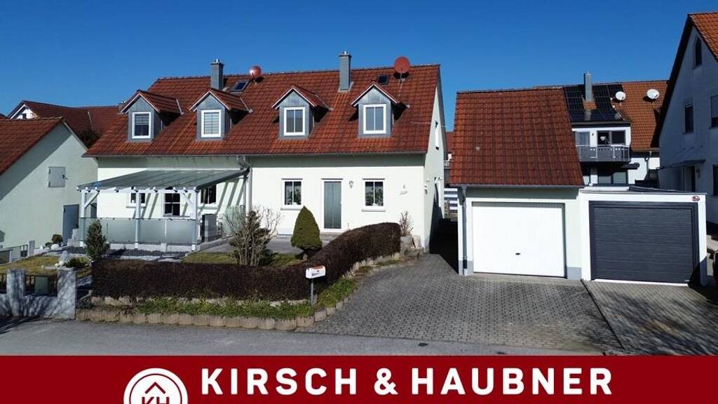 Das Wohnhaus: - Ideal für die kleine Familie - Schöne Doppelhaushälfte in naturnaher Lage - Ruhiges, sonniges Grundstück mit ca. 284 m² - Gute Aufteilung auf 3 Ebenen, Wohnfläche ca. 96,20 m² + voll unterkellert - Geräumige Süd-Terrasse - perfekt zum Entspannen - Praktisches Garagenhaus mit Kfz-Stellplatz, separater Werkstatt sowie Lagerfläche im Dachgeschoss - Baujahr 1996 - Massivbauweise - Ziegel 36,5 cm, Kalksplittstein (UG), Kunststofffenster - Böden: EG mit Laminat und Fliesen, DG mit Teppich und Fliesen - Sehr guter Gesamtzustand - Pflegeleichter Garten sowie Gemüsegarten & Regenwasser-Zisterne hinter dem Haus - Öl-Zentralheizung mit 3 Kunststofftanks, lt. Kaminkehrer besteht keine Austauschpflicht - Glasfaseranschluss wird aktuell installiert - Einzug kurzfristig möglich