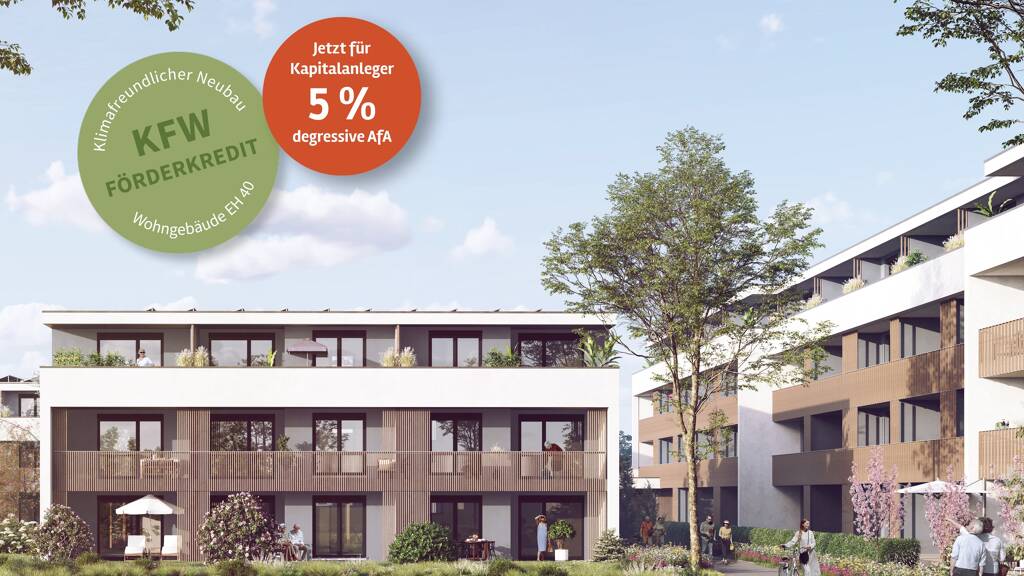 Nutzen Sie auch die Vorteile des zinsgünstigen KfW-Förderdarlehens von 100.000 Euro für den Kauf Ihrer Wohnung. Kapitalanleger können aktuell von der Steuervergünstigung in Form einer 5 %-igen degressiven AfA profitieren.