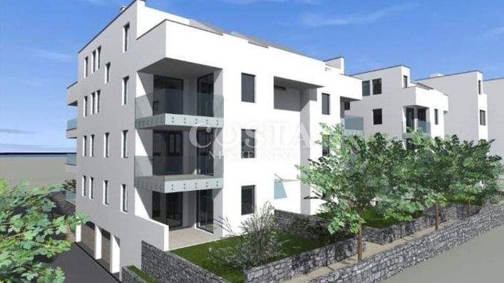 In Povljana auf der Insel Pag steht eine im Bau befindliche Gartenwohnung zum Verkauf. Die 54,10 m² große Wohnung befindet sich im Erdgeschoss eines Wohngebäudes mit 12 Wohneinheiten und Aufzug. Sie besteht aus Wohnzimmer, Wohnküche, Schlafzimmer, Badezimmer, Flur und Terrasse. Zur Wohnung gehören außerdem ein 23,8 m² großer Garten, ein Abstellraum im Untergeschoss und ein Außenstellplatz.