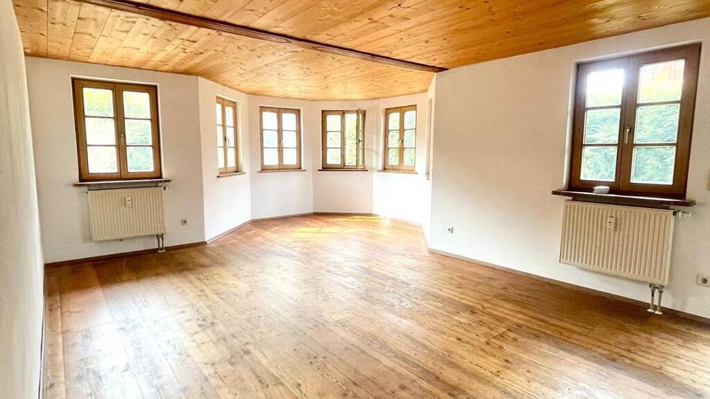 Ausstattung Die Wohnräume sind mit Lärchenparkett sowie teilweise neu verlegtem Vinylboden ausgestattet. Die Holzdielen wurden frisch bearbeitet und unterstreichen den warmen, natürlichen Charakter der Wohnung. Holzdecken und Holztüren verleihen den Räumen eine gemütliche Landhaus-Atmosphäre.