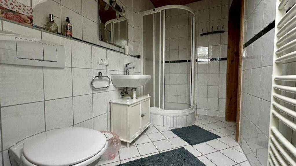 Wollen wir eine Etage höher gehen? Das Obergeschoss bietet neben 3 Zimmern noch ein weiteres Badezimmer mit WC. Von zwei der Zimmern haben Sie Zugang zum Balkon. Sie sehen also, von Elternschlafzimmer über Kinderzimmer bis hin zu Gästezimmer oder Büro sind Ihnen hier wenig Grenzen gesetzt.