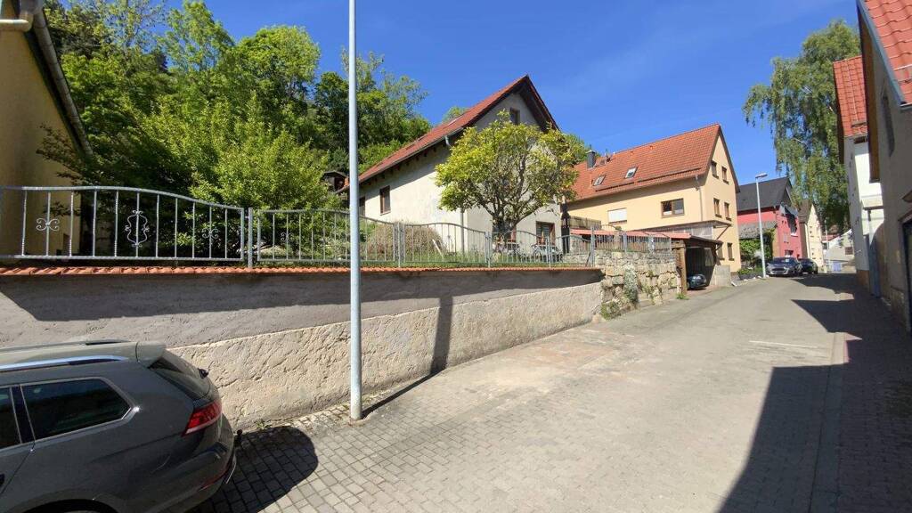 Der große Garten in Hanglage bietet viel Platz und einzelne Bereiche zur Nutzung im Freien. Eine Terrasse, ein fest angelegter Grillplatz sowie eine Feuerstelle sind vorhanden.