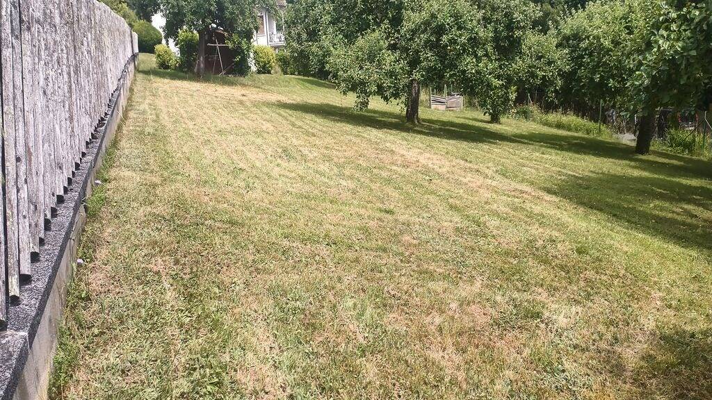 Das Grundstück hat eine mittlere Tiefe von ca. 48 Metern, was auch eine Teilung für Doppelhaushälften ermöglicht. Aktuell wird es als Obstwiese genutzt und lediglich ein kleiner Geräteschuppen steht auf der Wiese.