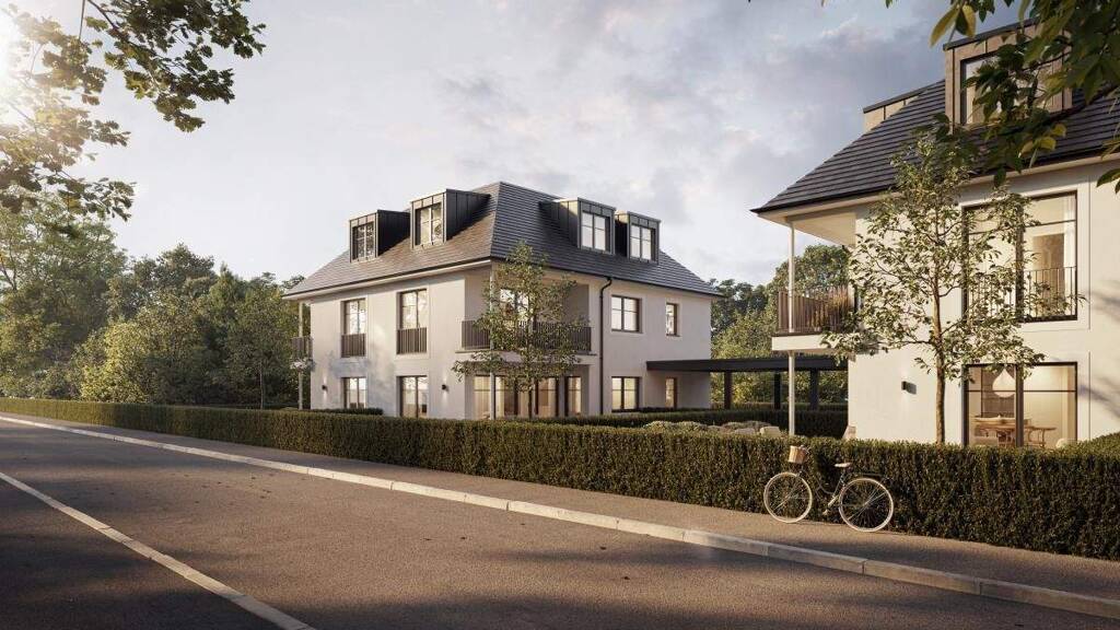 Das Neubau-Ensemble strahlt mit seiner zeitlos eleganten Architektur und der einheitlichen Farb- und Materialsprache bereits auf den ersten Blick einladenden Charme aus. Bodengleiche Fenster öffnen die Gebäude nach außen, herrliche Freisitze laden dazu ein, Sonne satt und frische Luft zu genießen.