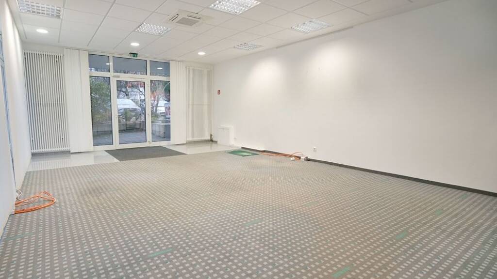Der großzügige Eingangs- und Ausstellungsbereich sorgt für einen freundlichen Empfang und viel Tageslicht dank der breiten Glasfront - perfekte Voraussetzungen, um Ihr Unternehmen ins rechte Licht zu rücken. Dahinter warten zwei weitere Räume mit Platz für ein bis zwei Arbeitsplätze, ein Bereich für Server und Drucker sowie eine kleine Teeküche und ein WC.