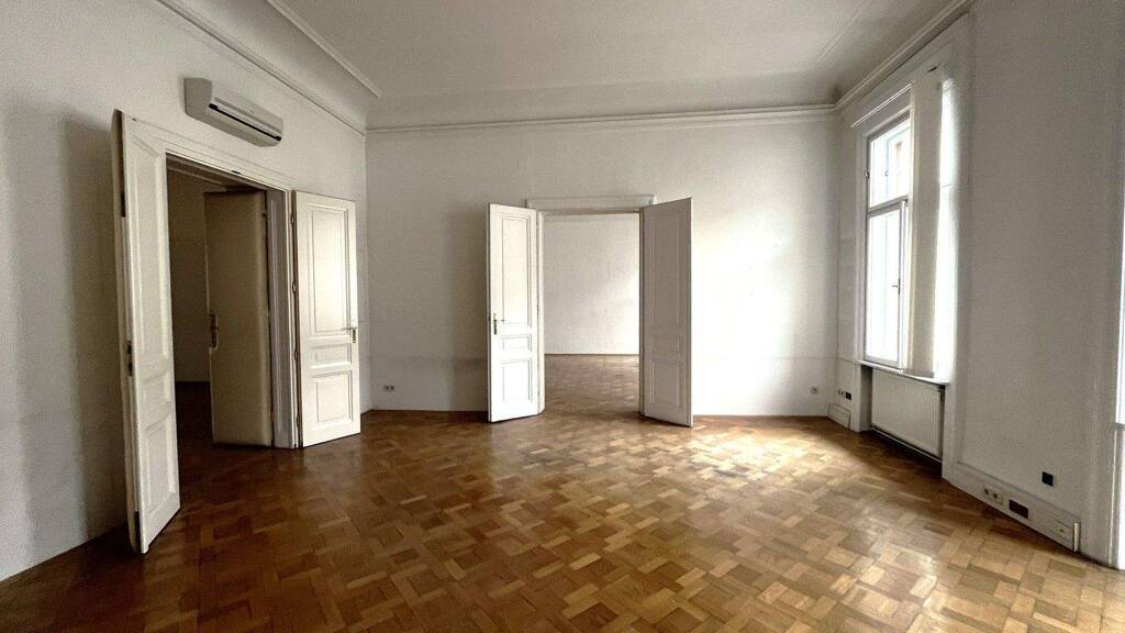 Das Büro wird zurzeit saniert und kann nach Vereinbarung bezogen werden. Sie ist mit hochwertigem Parkettboden, Flügeltüren und teilweise Kühlung ausgestattet. Die Raumkonfiguration ist sehr effizient und ein Großteil der Räume sind getrennt begehbar.