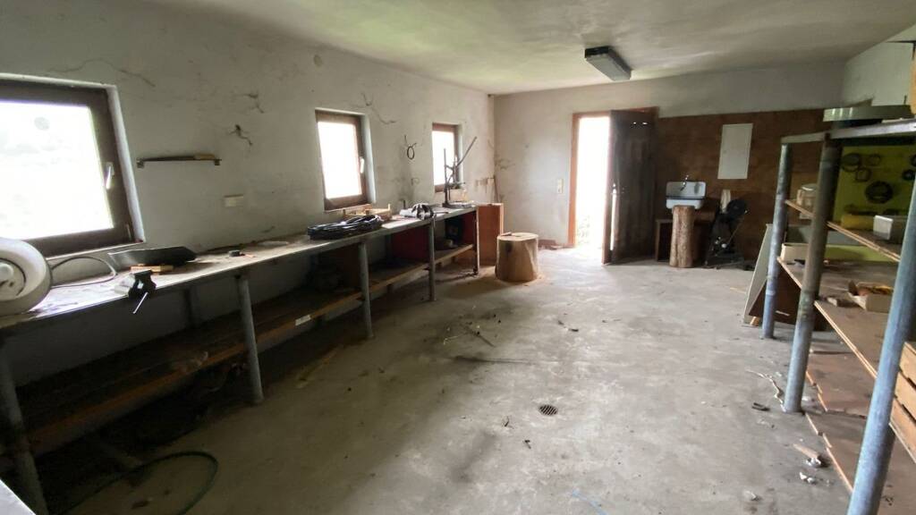 Besonders praktisch ist das Nebengebäude auf der gegenüberliegenden Straßenseite, welches 2 1/2 Garen und eine große Werkstatt im Untergeschoss bietet.