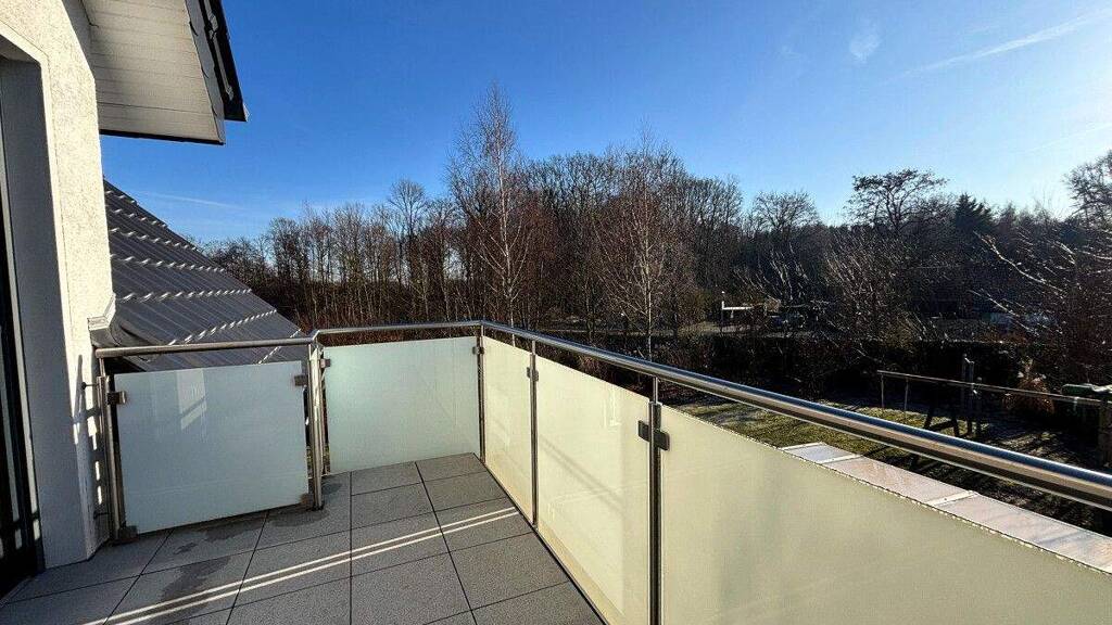 Die hochwertige Einbauküche von Schüller ist modern ausgestattet und verfügt unter anderem über einen Dampfgarer sowie eine neue Spülmaschine. Zwei komfortable Bäder bieten hohen Wohnkomfort. Im Erdgeschoss befindet sich ein barrierefreies Duschbad, im Dachgeschoss ein großzügiges Bad mit Badewanne und Dusche. Zwei Zimmer bieten Zugang zu einem großen sonnigen Balkon mit Blick ins Grüne.
