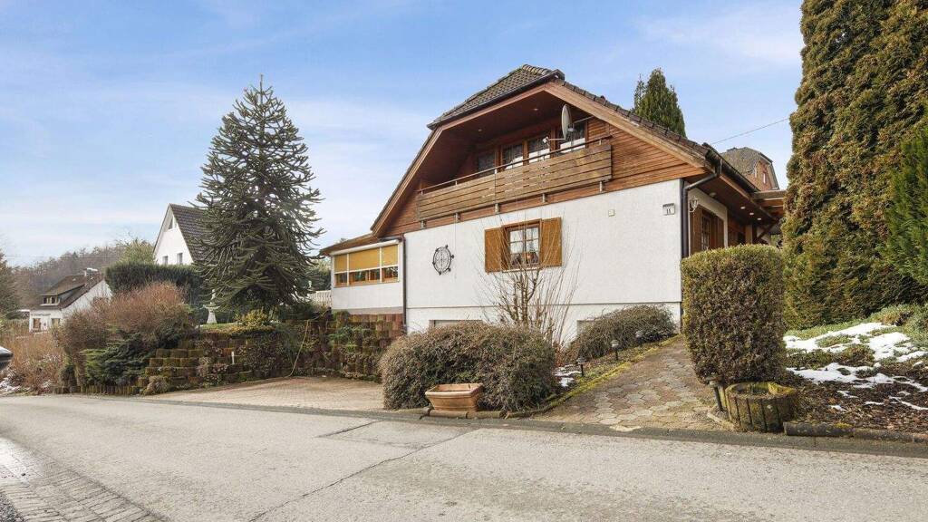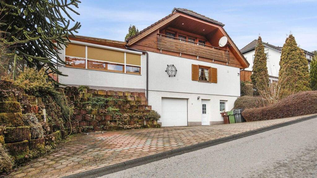 Dieses gepflegte Einfamilienhaus in Hanglage vereint eine besondere Architektur mit einer warmen, wohnlichen Ausstrahlung. Großzügige Räume, viel Holz und ein liebevoll gestalteter Außenbereich schaffen ein Zuhause mit besonderem Wohngefühl - ideal für Familien oder Paare, die Wert auf Platz, Ruhe und ein individuelles Wohnambiente legen.