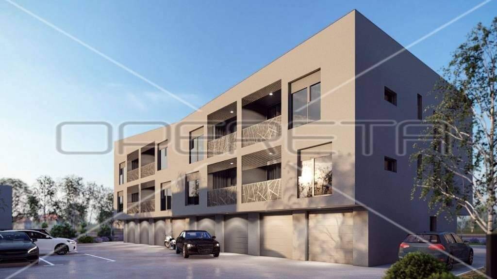 Manja zgrada sa samo 4 stana. Stan se sastoji od " open space" dnevnog boravka, blagovaonice i kuhinje s izlazom na loggiu, dvije sobe i kupaonice s wc-om. Istocne je i zapadne orijentacije. U cijeni je garaza, vanjsko parkirno mjesto i spremiste od 7,5m2. Odlicna lokacija na par minuta pjesacke udaljenosti od osnovne skole, trgovine i autobusne stanice, kao i do svih ostali sadrzaja vaznih za ugodan zivot. Useljenje 11/2026.