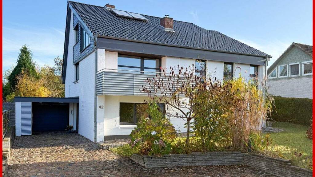 Schon im Entstehungsjahr 1976 war dieses über mehrere Ebenen erbaute Haus architektonisch eine Besonderheit. Die verschiedenen Wohn- bzw. Lebensbereiche sind auf mehrere "Splitlevel"-Ebenen verteilt und geben den Bewohnern des Hauses ein besonderes Wohngefühl von Offenheit und Intimität gleichermaßen. Das Haus bietet nach außen hin eine ansprechende Architektur und öffnet sich im Inneren über helle und offene Ebenen mit schönen Ausblicken über den Garten. Das Eingangsgeschoss mit großem, einladenden Flur verfügt über ein Arbeitszimmer, ein Gäste-WC und eine kleinen Einliegerwohnung mit 2 Zimmern, kleiner Pantryküche und Duschbad. Diese Ebene liegt verbindend zwischen dem tiefer gelegenen Teilkeller mit 2 Abstellräumen, einer Waschküche und dem Heizungsraum sowie den höher gelegenen Wohn- und Schlafbereichen. Das Balkongeschoss bietet ein traumhaftes Wohn- und Esszimmer mit Ofen und Zugang zum Balkon und bildet den Mittelpunkt des Hauses. Dieses Geschoss lädt zum Verweilen mit der ganzen Familie ein. Auch die Küche lässt das Herz eines Hobbykochs höher schlagen. Das Gartengeschoss bietet zwei Kinderzimmer, ein modernes Wannenbad, einen Abstellraum sowie den Zugang zum Garten. Das Obergeschoss 1 hält das Elternschlafzimmer und ein großes Duschbad bereit. Im Obergeschoss 2 befindet sich ein weiteres Gästezimmer. Auf der letzten Ebene, dem Dachgeschoss, befindet sich eine ca. 20 m² große Fläche mit wohnwirtschaftlichem Charakter, die ideal als Hobbyraum genutzt werden kann. Der Garten bietet eine großzügige Rasenfläche, ein ansprechendes Gartenhaus, eine geschützt angelegte Sonnenterrasse und ist liebevoll mit Beeten, Büschen, Stauden, Hecken und Bäumen bepflanzt. Die Garage mit elektrischem Sektionaltor komplettiert das attraktive Angebot.