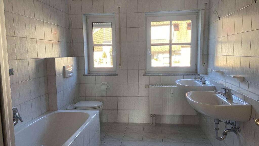 Das Badezimmer ist mit Wanne, Dusche und Fenster ausgestattet. Ein Abstellraum ein eigner Dachboden bieten zusätzlich Stauraum. Zur Wohnung gehören außerdem zwei Außenstellplätze. Diese Dachgeschosswohnung eignet sich ideal für Paare oder Familien, die großzügiges Wohnen, hochwertige Ausstattung und ein ruhiges, helles Wohnambiente schätzen.