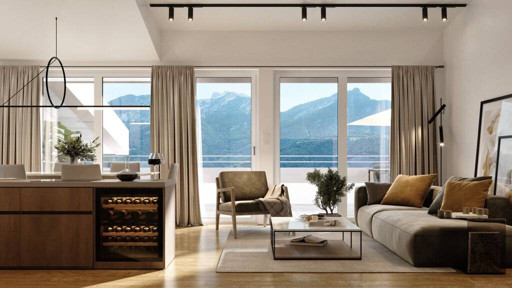 Der Projektname "Südseite Golling" ist Programm: Auf der sonnigen Südseite genießen alle Geschosse einen freien Panorama-Bergblick - ohne direkte Nachbarn.