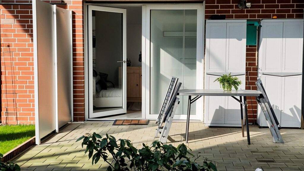 Zu der Wohnung gehört ein eigener Kellerraum, sowie ein Terrasse mit Gartenhäuschen. Ein Tiefgaragenstellplatz gehört ebenfalls dazu und bietet komfortables, geschütztes Abstellen. Barrierearm und nachhaltig gestaltet, ist diese Wohnung ideal für ruhiges Wohnen in direkter Naturnähe.