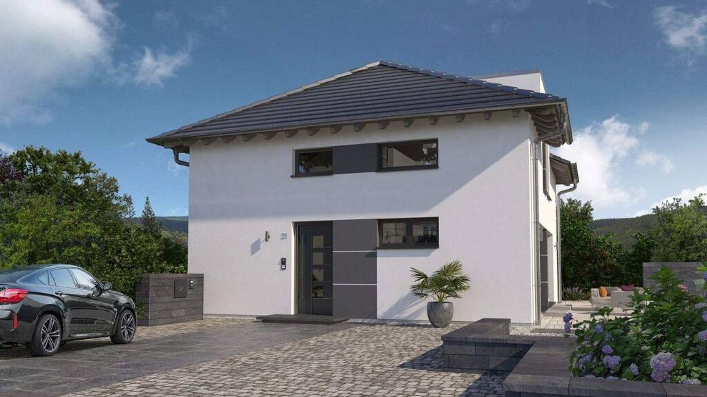 Der Lieblingsplatz der Stadtvilla 12 ist schnell ausgemacht: im Obergeschoss, direkt im Bereich des Erkers, der mit zwei großen Fenstern punktet. Hier ist der Rückzugs-, Lern- und Spielort für die beiden Kinder, schließlich erstreckt sich der Erker über beide Zimmer. Und er ist zugleich zentrales Gestaltungselement, denn er durchbricht das Walmdach auf architektonisch ansprechende Weise. Apropos Walmdach: Diese Dachkonstruktion sorgt dafür, dass das obere Stockwerk nicht als Vollgeschoss zählt (Hamburger Eingeschossigkeit) und die Stadtvilla auch dort errichtet werden kann, wo nur eine eingeschossige Bauweise erlaubt ist - und das, ohne dass Sie auf Komfort und Raum verzichten müssen. Mittelpunkt des Hauses ist der mehr als 42 m² große Wohn-Ess-Kochbereich mit direktem Zugang zum Garten. Abgerundet wird das Raumangebot Parterre durch einen großen HWR, Gäste-WC und Abstellraum. Im Obergeschoss steht nicht nur zwei Kindern ihr Lieblingsort zur Verfügung. Auch die Eltern haben ausreichend Platz zum Schlafen und Träumen. Ein weiteres Highlight: das fast 15 Quadratmeter große Bad.