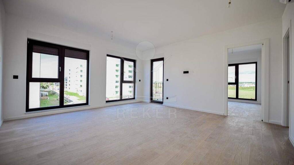 Das Gebäude umfasst vier Eingänge mit insgesamt 122 Wohnungen. Die Architektur wirkt klar, die Bauweise hochwertig. Großzügige Balkone schaffen zusätzlichen Raum im Freien. Jeder Eingang ist mit einem Aufzug ausgestattet, der direkt vom Garagenbereich zu den Wohnungen führt. Eine Innentreppe ergänzt das Konzept. Ein Wohnhaus, das Funktionalität und Stil auf harmonische Weise verbindet.