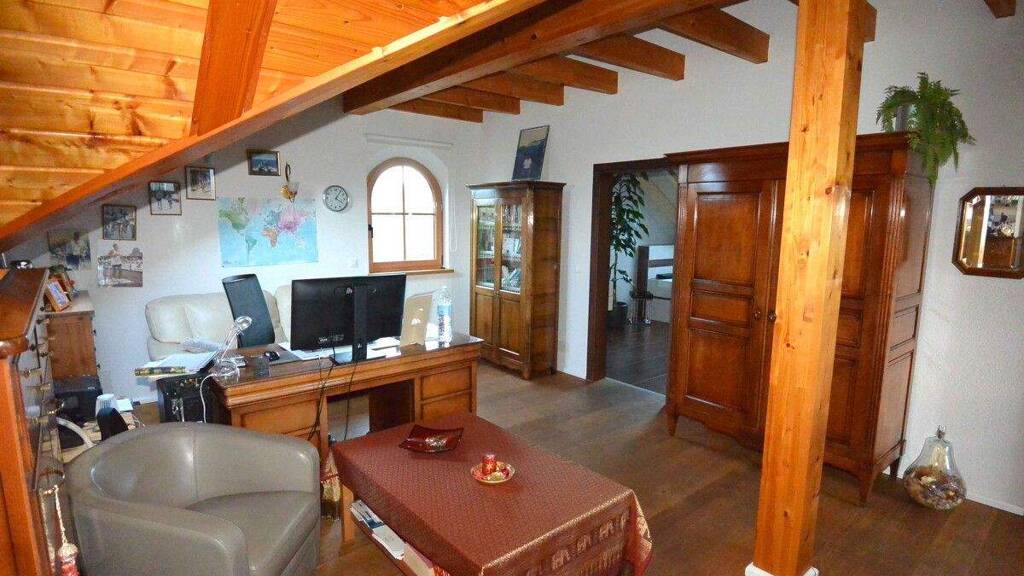 Das 695 m² große Grundstück ist liebevoll angelegt und bietet einen gepflegten Garten mit großer Südterrasse. Eine moderne, in den Wohnraum integrierte Küche, Fußbodenheizung (Gas), Kaminanschluss im Wohnzimmer, ein elektrisches Garagentor sowie ein Holzchalet für Gartenmöbel und -geräte runden dieses attraktive Angebot ab.