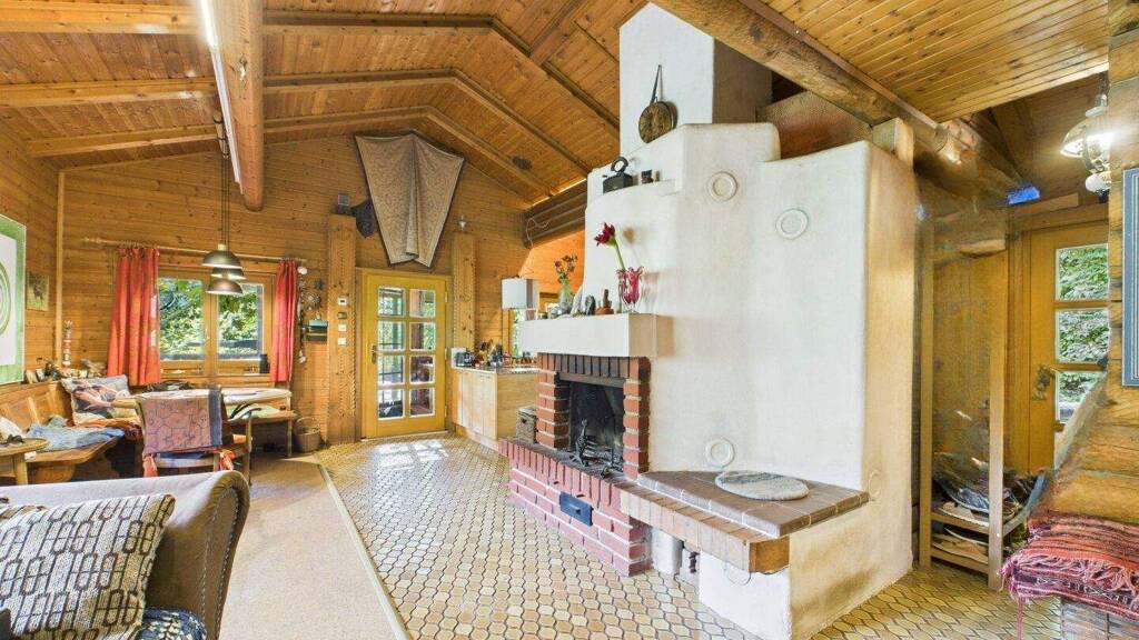 Holzbohlenhaus mit etwa 165 m² Wohnfläche auf drei Ebenen: Charaktervoll, warm und authentisch, mit Balkon und überdachter Terrasse als natürliche Erweiterung in den Garten. Die Beheizung erfolgt über Kachelofen, offenen Kamin und Infrarotpaneele. Eine Sauna mit Holzofen schafft einen zusätzlichen Rückzugsort. Die Küche ist als Vollholzküche aus Erle ausgeführt und mit Dampfgarer, Miele-Kühlschrank und Geschirrspüler ausgestattet.