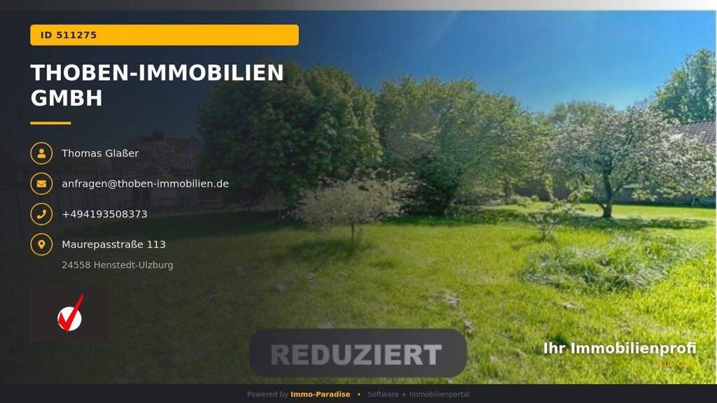 Zum Beispiel per Telefon 04193 / 50 83 73 oder über unsere Homepage: thoben-immobilien . de