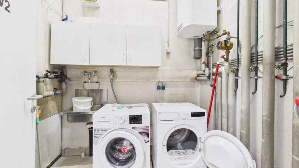 - einen separaten Wasch- bzw. Technikraum mit Waschmaschine, Trockner und Waschbecken