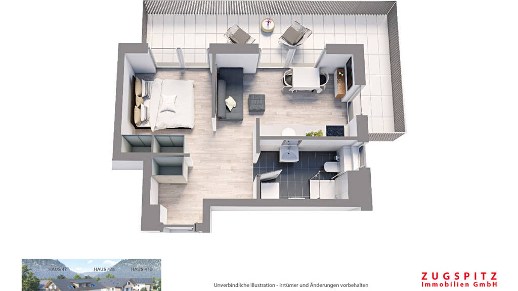Wohnung zum Kauf - Erstbezug497000 €11.219 €/m²2 Zimmer • 44,3 m² • 1. Geschoss