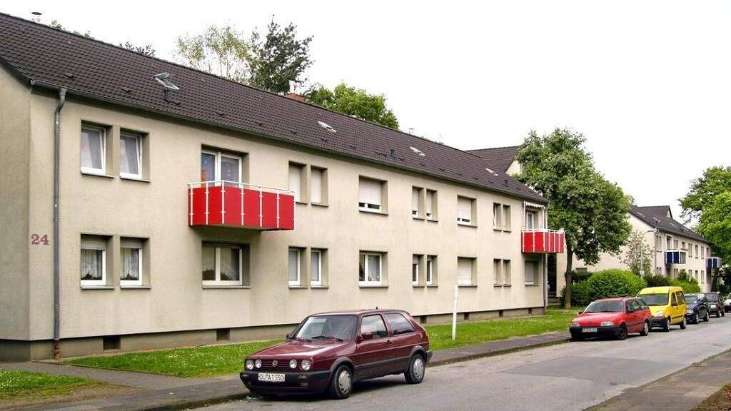 Wiesen und Bäume bestimmen das Bild der gepflegten, sehr ruhig und doch zentral gelegene Wohnanlage in Duisburg-Huckingen.