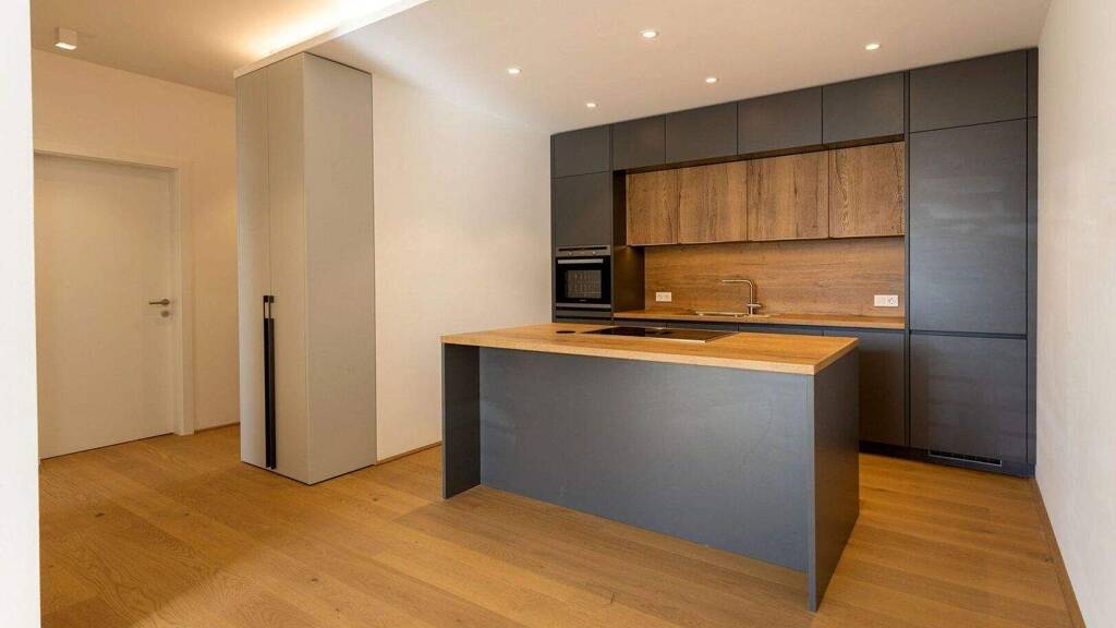 Die Wohnung hat eine optimale Raumaufteilung: einen offenen Wohn-Ess-Kochbereich mit Kücheninsel, ein Schlafzimmer, ein Bad mit Dusche, ein separates WC und einen geräumigen Garderobenbereich.