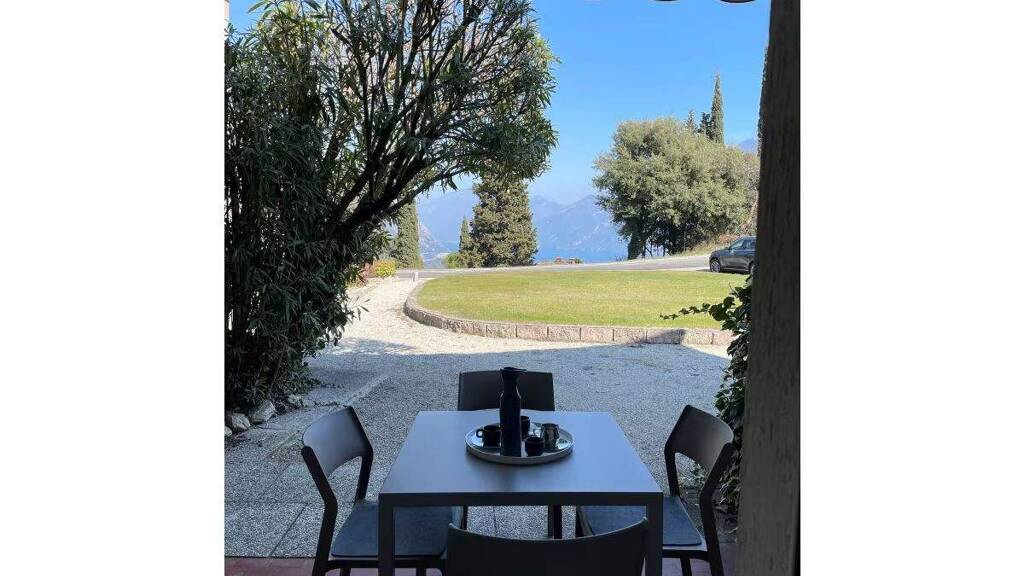 Die Terrasse erweitert den Wohnraum ins Freie und bietet einen eindrucksvollen Blick auf den Gardasee – ideal für entspannte Stunden zu jeder Tageszeit.