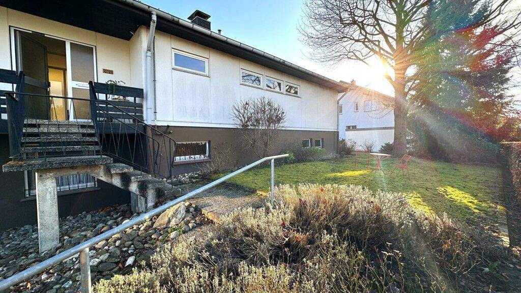 Zum Verkauf steht ein freistehendes Einfamilienhaus auf einem 760 m² großen Grundstück. Die Immobilie wurde im Jahr 1972 als Halbfertighaus der Firma Streif mit massivem Untergeschoss errichtet. Ihr neues Zuhause bietet mit, ca. 143 m² Wohnfläche, einem schönen Garten, und einer großen Sonnenterrasse mit Grillbereich viele Nutzungsmöglichkeiten. Zudem erwartet Sie hier eine Garage im XXL-Format mit viel Platz für Pkw's, Motorräder und E-Bikes. Die große Garage erreichen Sie über die Zufahrt auf Ihren Innenhof, ein elektrisches Garagentor sorgt für die rasche Einfahrt in Ihre Garage. Der direkte Zugang zum Haus und in den Garten ist vorhanden.