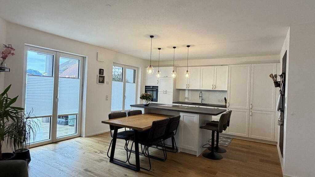 Das Herzstück der Wohnung bildet der großzügige, offen gestaltete Wohn- und Essbereich mit Küche. Große Fensterflächen sorgen für viel Tageslicht und schaffen eine freundliche, einladende Atmosphäre. Von hier aus gelangen Sie direkt in den eigenen, abgetrennten Garten, ideal zum Entspannen, für gesellige Abende oder als geschützter Rückzugsort im Grünen.