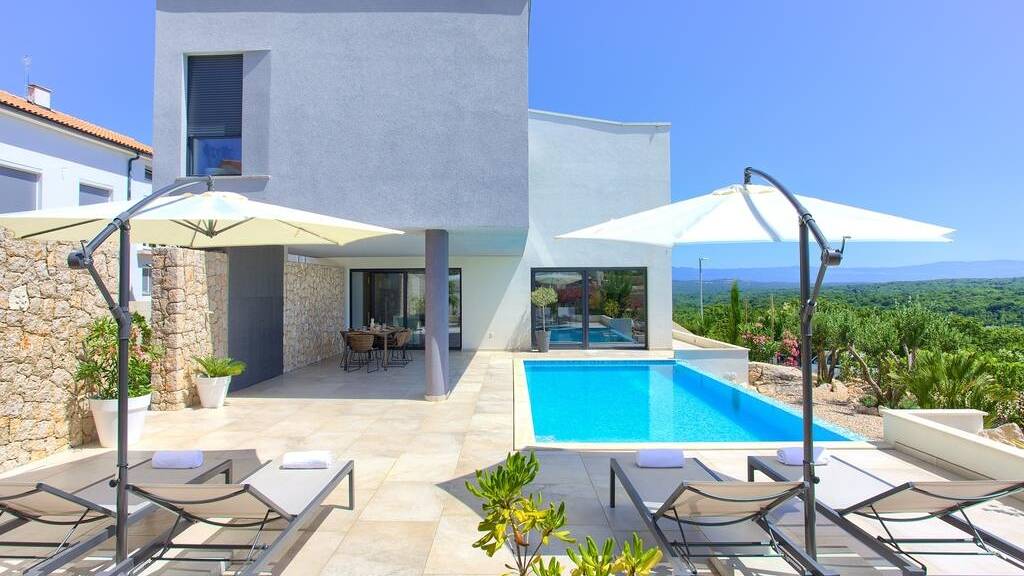 INSEL KRK, STADT KRK (Umgebung) - Luxusvilla mit Infinity-Pool und Meerblick