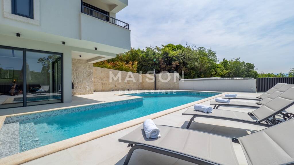 In ruhiger und gepflegter Umgebung, unweit vom Meer, befindet sich dieses elegante, modern gestaltete Haus, das hochwertige Bauweise, durchdachte Funktionalität und mediterranes Ambiente mit einem Hauch von Luxus vereint.
