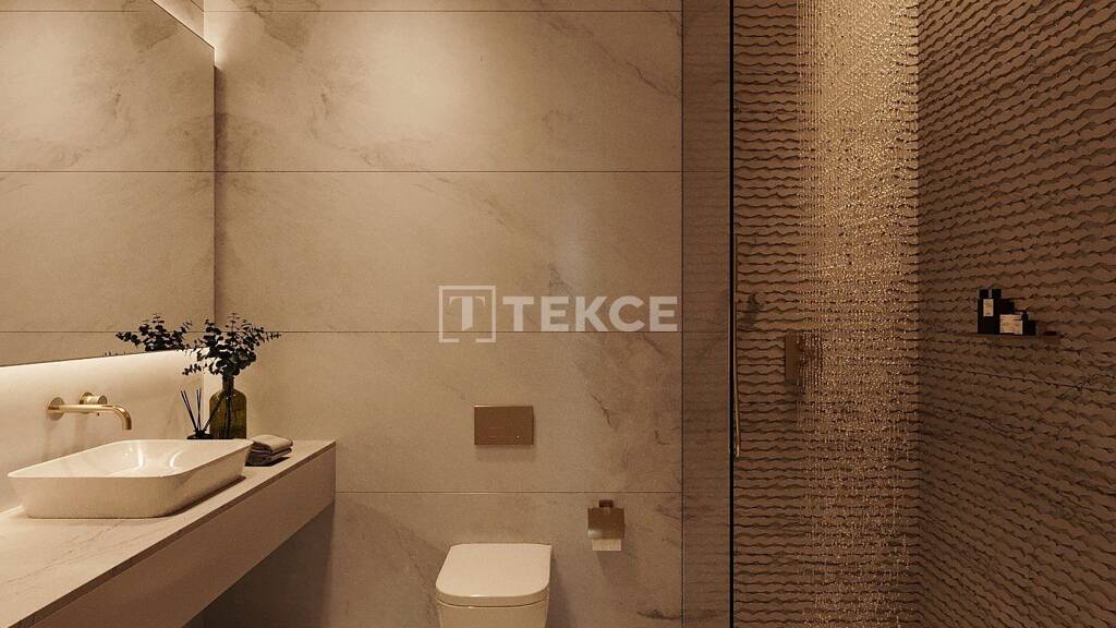 Die Wohnungen zum Verkauf in Istanbul sind mit einer 5-Flammen-Einbauküche mit Backofen, Dunstabzugshaube, Herd, Geschirrspüler und Kühlschrank ausgestattet. Sie verfügen außerdem über eine umfangreiche Ausstattung wie Stahltüren, ein intelligentes Haussystem, Laminat- und Keramikoberflächen, Duschkabinen, doppelt verglaste PVC-Fenster und Balkontüren.
