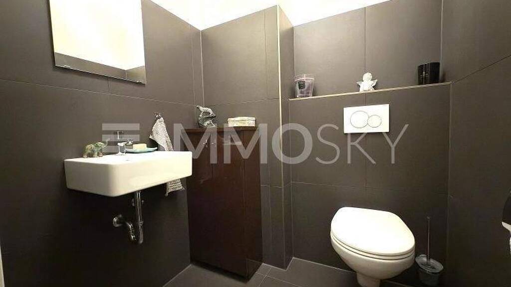 Die 3-Fach verglasten Fenster und Dachfenster fluten alle Räume mit Tageslicht und schaffen eine freundliche, luftige Atmosphäre. Charakterstarkes hochwertiges Parkett verleiht Wärme und Stil; großformatiges Feinsteinzeug in Bad und WC setzt zeitlose Akzente. Das Bad ist hochwertig ausgestattet mit Walk-in-Dusche bzw. Badewanne, formschönen Designwaschbecken und Markenarmaturen.