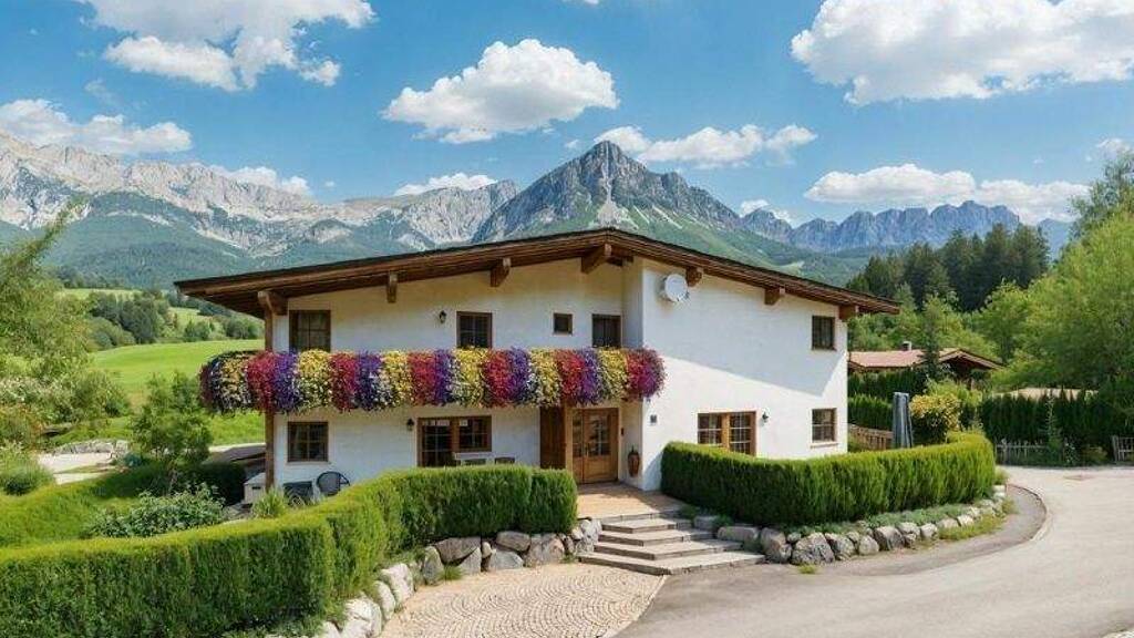 Ellmau am Wilden Kaiser - Eine Urlaubsidylle in den Tiroler Alpen. Die Gemeinde Ellmau liegt malerisch eingebettet zwischen dem imposanten Kalkmassiv des Wilden Kaisers im Norden und dem Hartkaiser im Süden auf 820 Metern Höhe, direkt am Fuße des Naturschutzgebiets Wilder Kaiser, nur etwa 15 Kilometer von Kitzbühel entfernt. Der charmante Tiroler Ort zählt sowohl zu den begehrtesten Sommer- als auch Wintersportdestinationen der Region. Ein Highlight für Golfliebhaber ist der 27-Loch-Golfplatz mit atemberaubendem Alpenpanorama. Für Familien und Aktivurlauber bietet das große Erlebnisschwimmbad Abwechslung und Erholung. Die Standseilbahn führt direkt auf den Hartkaiser und verbindet Ellmau mit der Skiwelt Wilder Kaiser - Brixental, einem der größten zusammenhängenden Skigebiete Österreichs: 279 perfekt präparierte Pistenkilometer, davon über 180 km beschneibar, 90 moderne Bahnen und Lifte sowie über 70 urige Hütten und Bergrestaurants garantieren Wintersportvergnügen auf höchstem Niveau. Ellmau verfügt über eine ausgezeichnete Infrastruktur. Zahlreiche Einkaufsmöglichkeiten für den täglichen Bedarf sowie eine große Auswahl an Gastronomiebetrieben - von der gemütlichen Tiroler Stube bis zum gehobenen Restaurant - runden das Angebot ab.