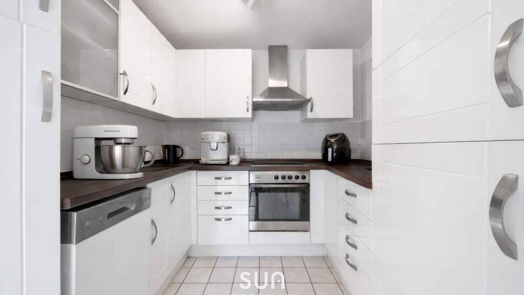 Die integrierte Einbauküche fügt sich harmonisch in das Wohnkonzept ein und bietet optimale Voraussetzungen für den täglichen Komfort. Hochwertige Materialien und eine klare Linienführung prägen das Gesamtbild dieser Wohnung und verleihen ihr eine zeitlose Eleganz.