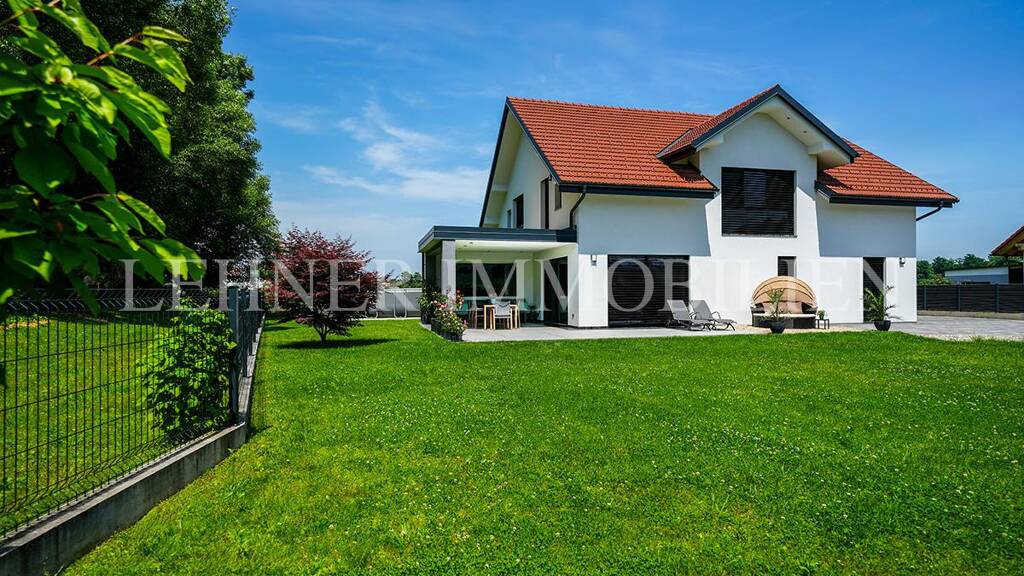 Dieses moderne und stilvolle Einfamilienhaus bietet auf rund 207 m² Wohnfläche und einem Grundstück von 880 m² höchsten Wohnkomfort für Familien, die Ruhe und Lebensqualität schätzen. Die Liegenschaft befindet sich in absoluter Grünruhelage in einer Sackgasse, nur wenige Schritte vom beliebten Murradweg entfernt.