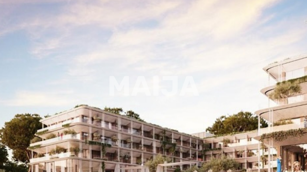 Luxus-Residenz in Radhimë, erste Baulinie, mit Panoramablick auf den Golf von Vlora und direktem Zugang zum Privatstrand. Moderner 4-stöckiger Wohnkomplex mit zeitgenössischer Architektur, Resortdesign und hochwertiger Bauweise.