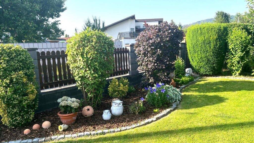 Auf der dem Haus vorgelagerten Terrasse können Sie nach einem anstrengenden Arbeitstag herrlich entspannen und den Blick in den wundervollen Garten mit Bioptop genießen.