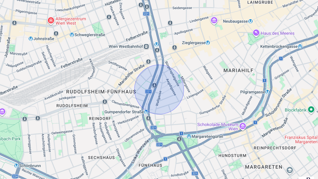 In unmittelbarer Nähe zur Mariahilfer Straße und zum Westbahnhof bietet die Umgebung nicht nur Nahversorger und Einkaufsmöglichkeiten in Fußnähe, sondern auch eine herausragende öffentliche Verkehrsanbindung.
