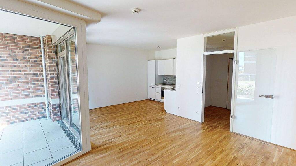 Bei der angebotenen Wohnung handelt es sich um eine 2-Zimmer-Wohnung im 2. Obergeschoss. Beim Betreten der Wohnung gelangt man in einen geschlossenen Flurbereich mit Nische für einen Schrank, eine Kommode oder eine Ankleide. Über den Flur sind das moderne Duschbad mit Waschmaschinenanschluss und das großzügige Wohnzimmer mit offener Küche (inkl. Einbauküche) erschlossen. Vom Wohnzimmer hat man Zugang zu einem Schlafzimmer mit etwa 14 m² sowie zu einem gemütlichen Balkon mit Nord-West-Ausrichtung in Richtung Innenhof. Weiterhin kann ein Tiefgaragenstellplatz angemietet werden. Zudem bietet ein Kellerraum weitere Staufläche.