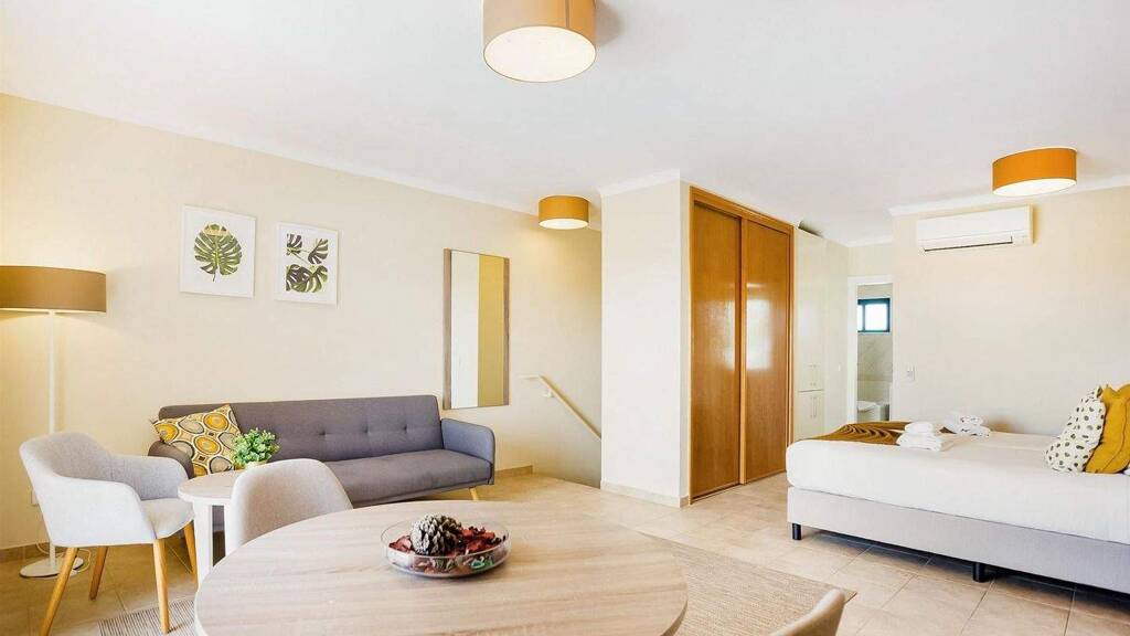 T0-Apartment mit großer Terrasse, gelegen neben dem Gramacho Golfplatz und 4 Kilometer von Ferragudo entfernt. Dieses komfortable Studio ist mit einer separaten Küche, einem geräumigen Badezimmer mit Badewanne und Einbauschrank ausgestattet. Die Immobilie verfügt über Klimaanlage und genießt eine hervorragende Sonneneinstrahlung mit Zugang zu einem Balkon und einer großzügigen Terrasse mit Blick auf die Serra de Monchique. Die Immobilie wird möbliert verkauft.