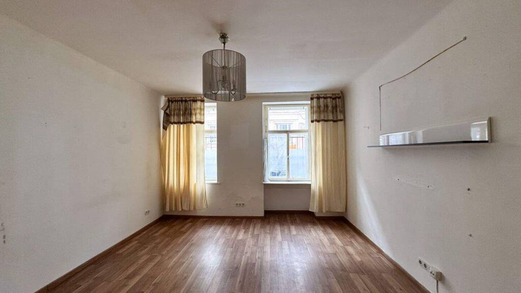 Aktuell besteht kein Plankonsens. Die Wohnung ist in einem renovierungsbedürftigen Zustand und wird mittels einem Gastkonvektor und einer Elektroheizung beheizt. Ein Kellerabteil ist zugehörig. Ein 49 m2 Gartenanteil welcher durch den Hof begehbar ist zugehörig.
