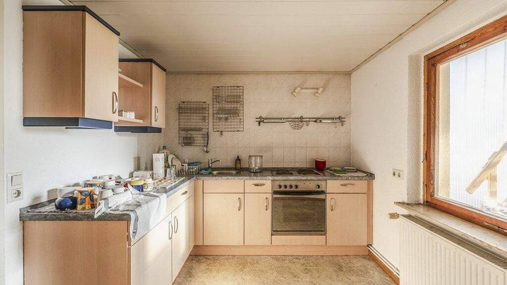 Ein Nebengelass mit zwei kleinen Wohneinheiten ergänzt das Anwesen und bietet weitere Optionen, beispielsweise für Gäste, Angehörige oder eine perspektivische Nutzung. Die Beheizung des Nebengebäudes erfolgt ebenfalls über Öl.