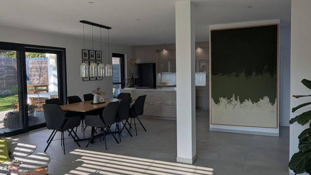 Dieses moderne und hochwertig ausgestattete Einfamilienhaus überzeugt durch seine ruhige Lage im Grünen und ein durchdachtes Raumkonzept. Helle, großzügig geschnittene Zimmer - insbesondere der weitläufige Wohn- und Essbereich - schaffen ein angenehmes Wohngefühl.
