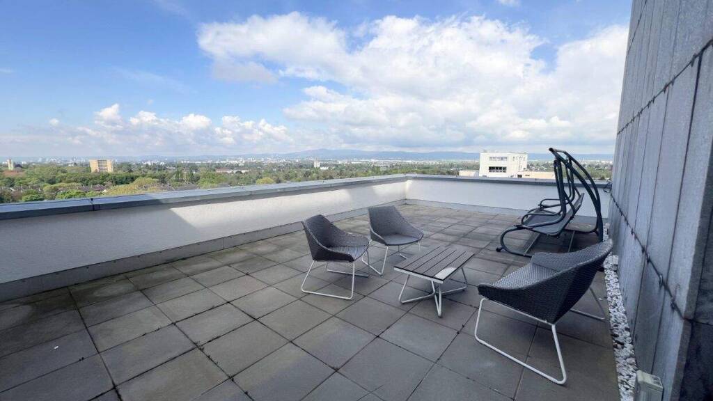 Das besondere Highlight ist die die 43 m² große Dachterrasse mit einem atemberaubenden Panoramablick über die Stadt. Hier können Sie entspannen, den Sonnenuntergang genießen und unvergessliche Momente verbringen.